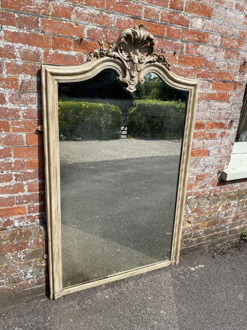Delightful Large Antique French 19th Century Carved Wood & Gesso Shaped Top Painted Mirror
