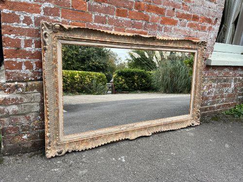 Delightful Large Antique French 19th Century Carved Wood Original Painted Mirror