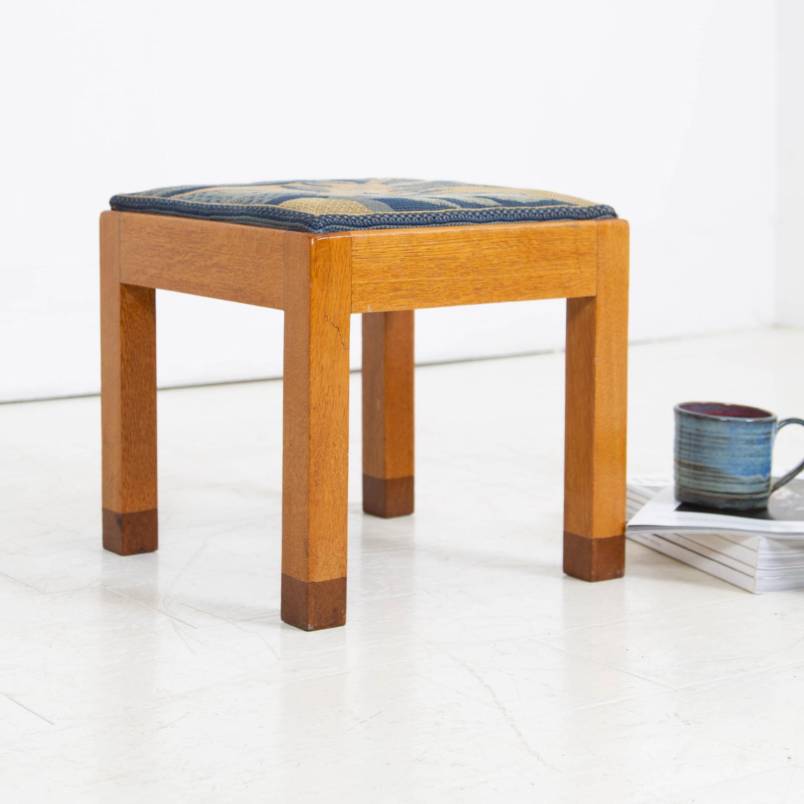 Delightful Little Light Oak Stool with Tapestry Top c.1930