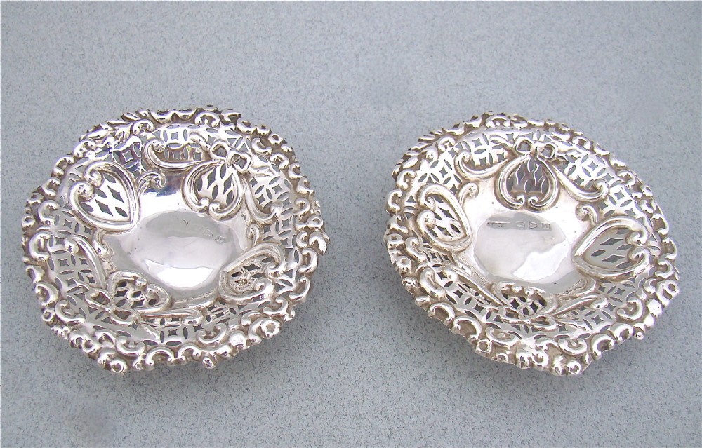 Delightful Pair of Victorian Silver Bonbon Dishes by Saunders & Shepherd, Chester 1895
