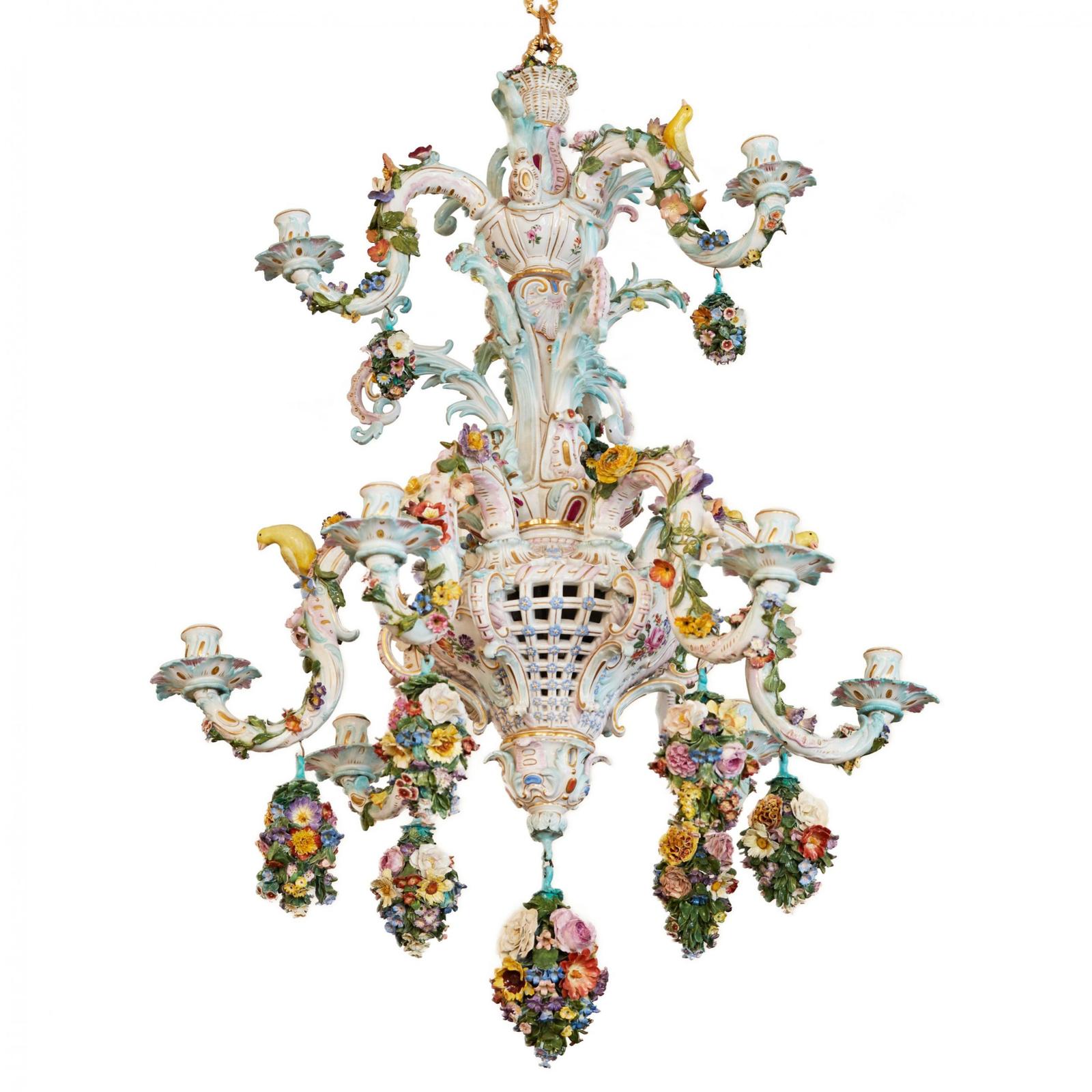 Delightful porcelain chandelier Meissen 1790, from the residence of King Alfonso XIII in Biarritz.