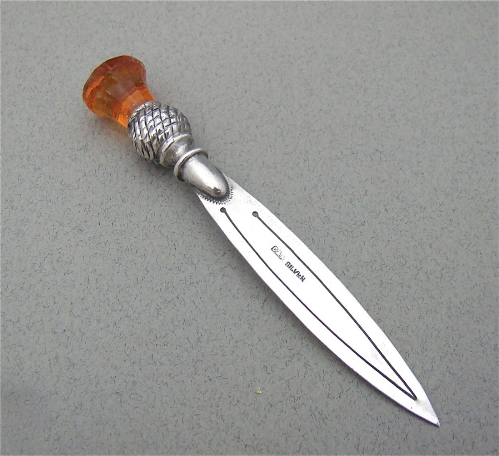 Delightful Silver & Amber Glass Bookmark by Crisford & Norris, Birmingham c.1920