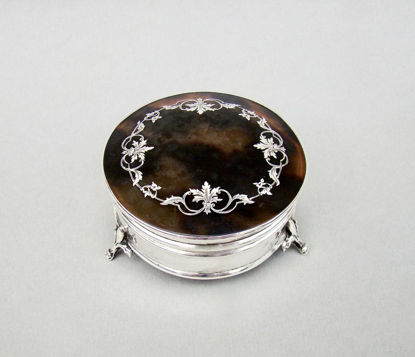 Delightful Silver & Tortoiseshell Trinket Box by Edward Souter Barnsley, Birmingham 1921