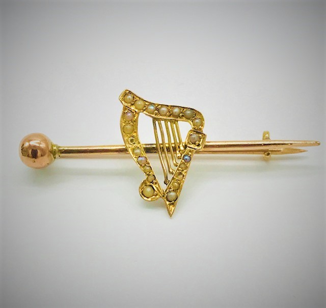 Delightful Victorian 15ct Hallmarked Gold Harp Brooch C.1880