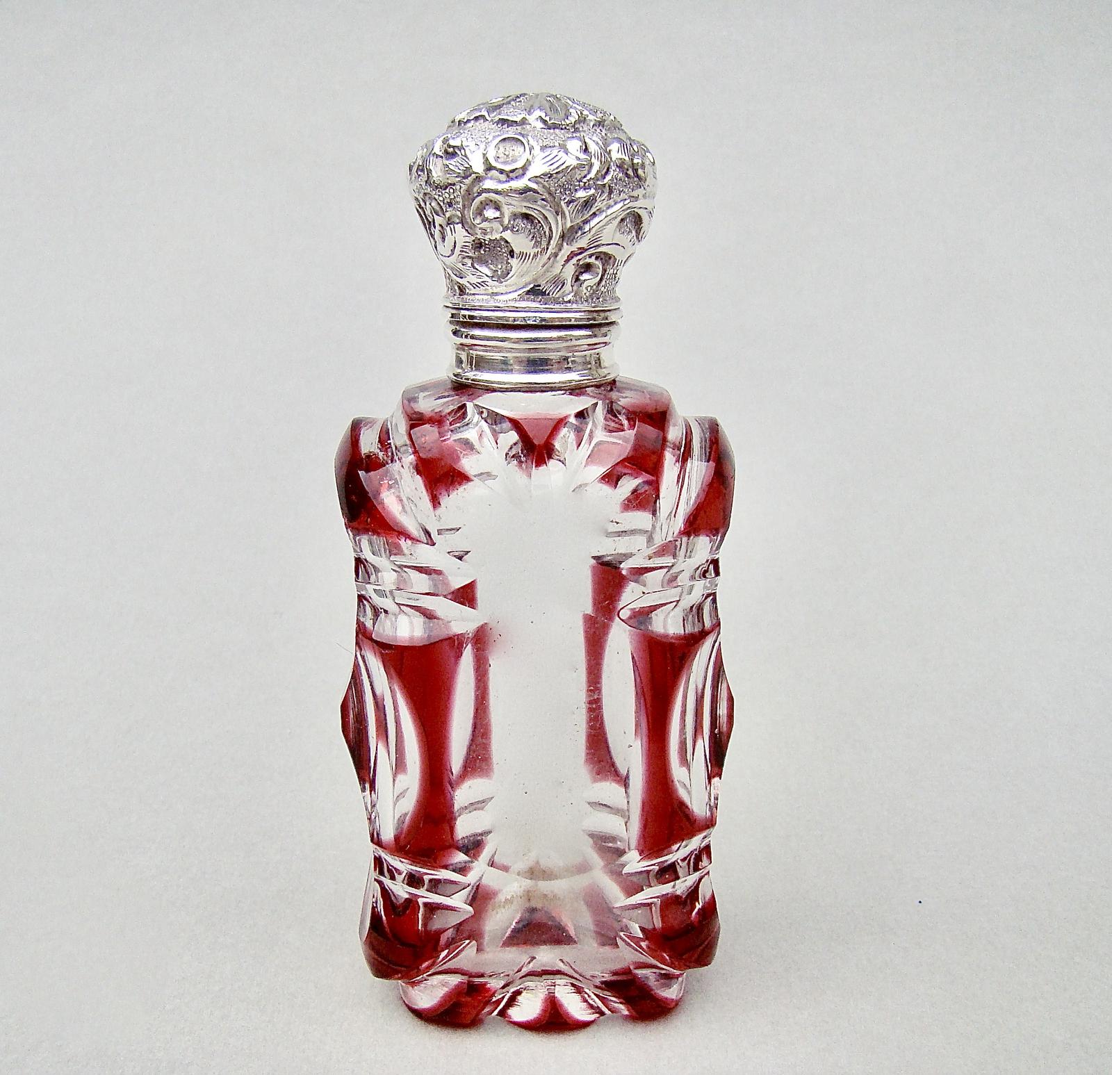 Delightful Victorian Bohemian Overlay Cranberry Glass Scent Bottle c.1890