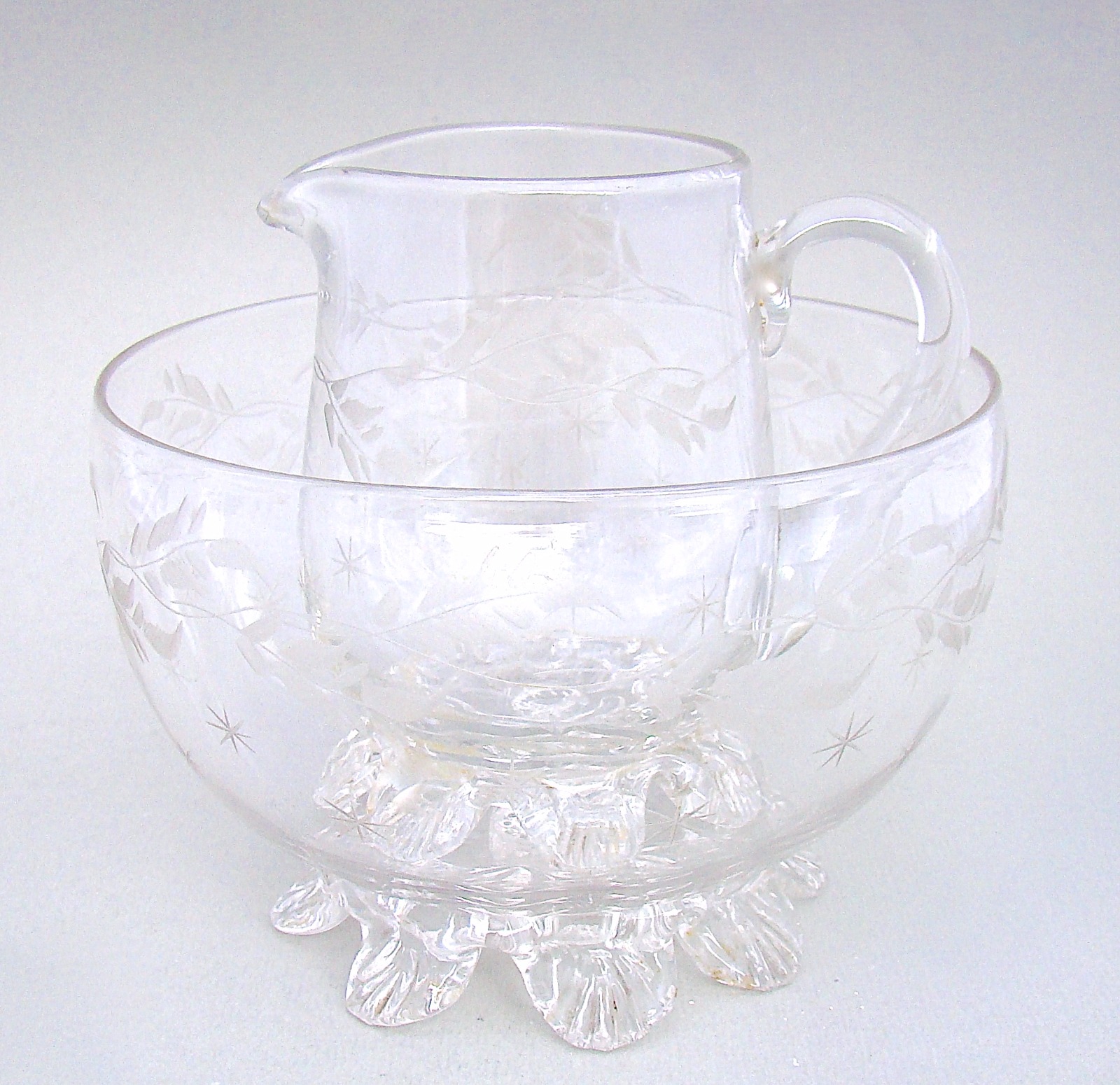 Delightful Victorian Etched Glass Cream Jug and Sugar Bowl c.1890