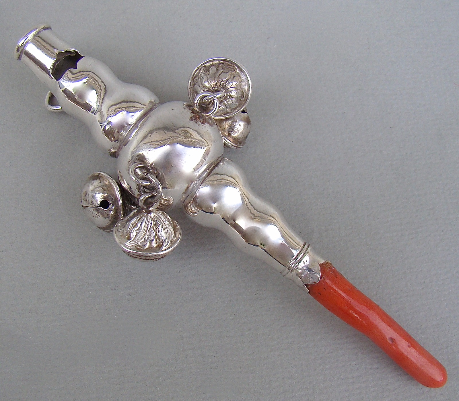 Delightful Victorian Silver & Coral Rattle, Birmingham c.1880