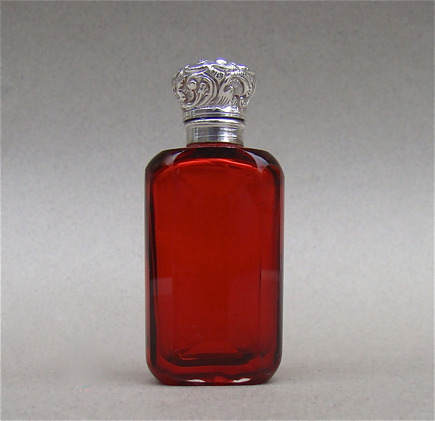 Delightful Victorian Silver & Cranberry Glass Scent Bottle c.1890