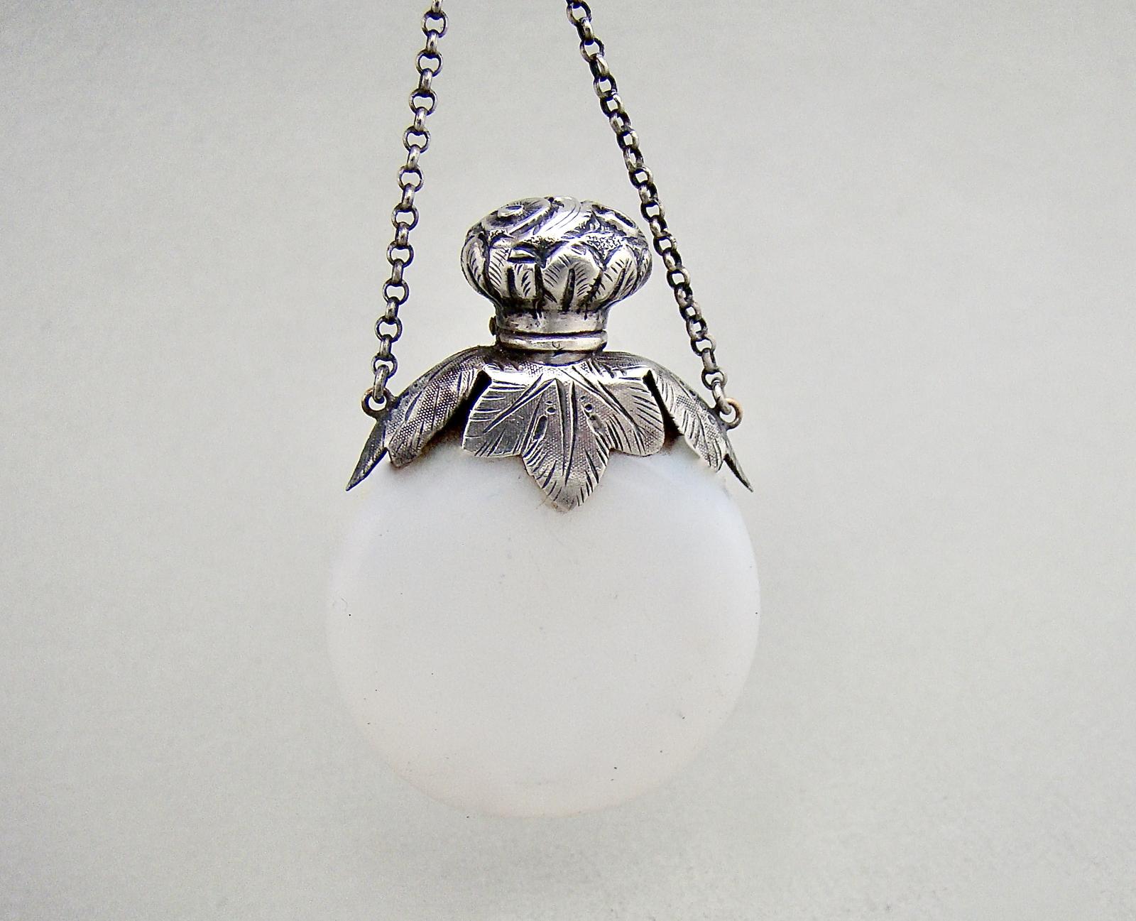 Delightful Victorian Silver & Opaline Glass Chatelaine Scent Bottle c.1880