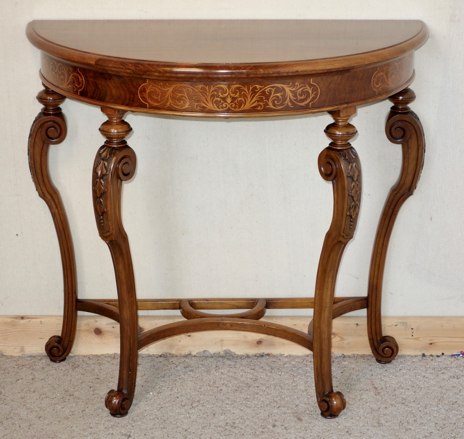 Demi Lune Walnut Marquetry Inlay Side Table c.1920 (1 of 1)