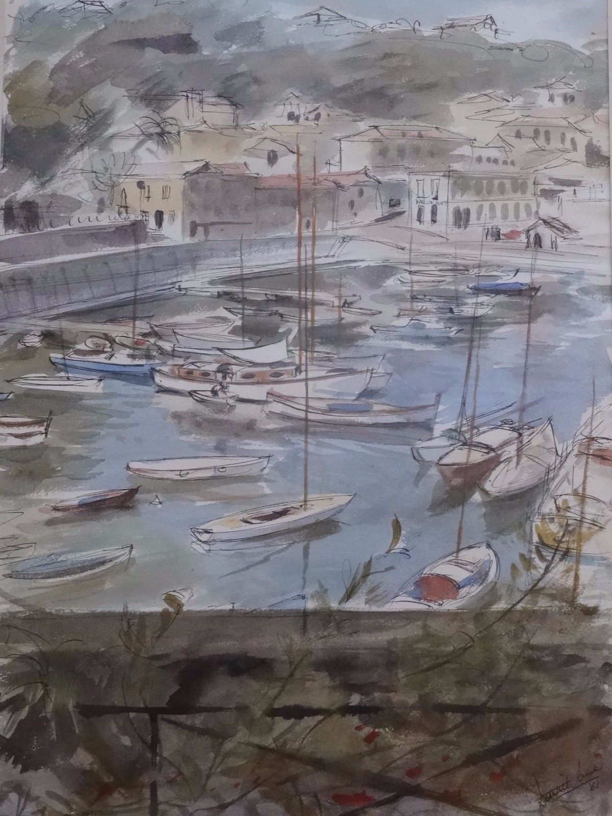 'Dennis James' (Fl 1960'S) Pen, Ink & Watercolour Painting of a Harbour Scene