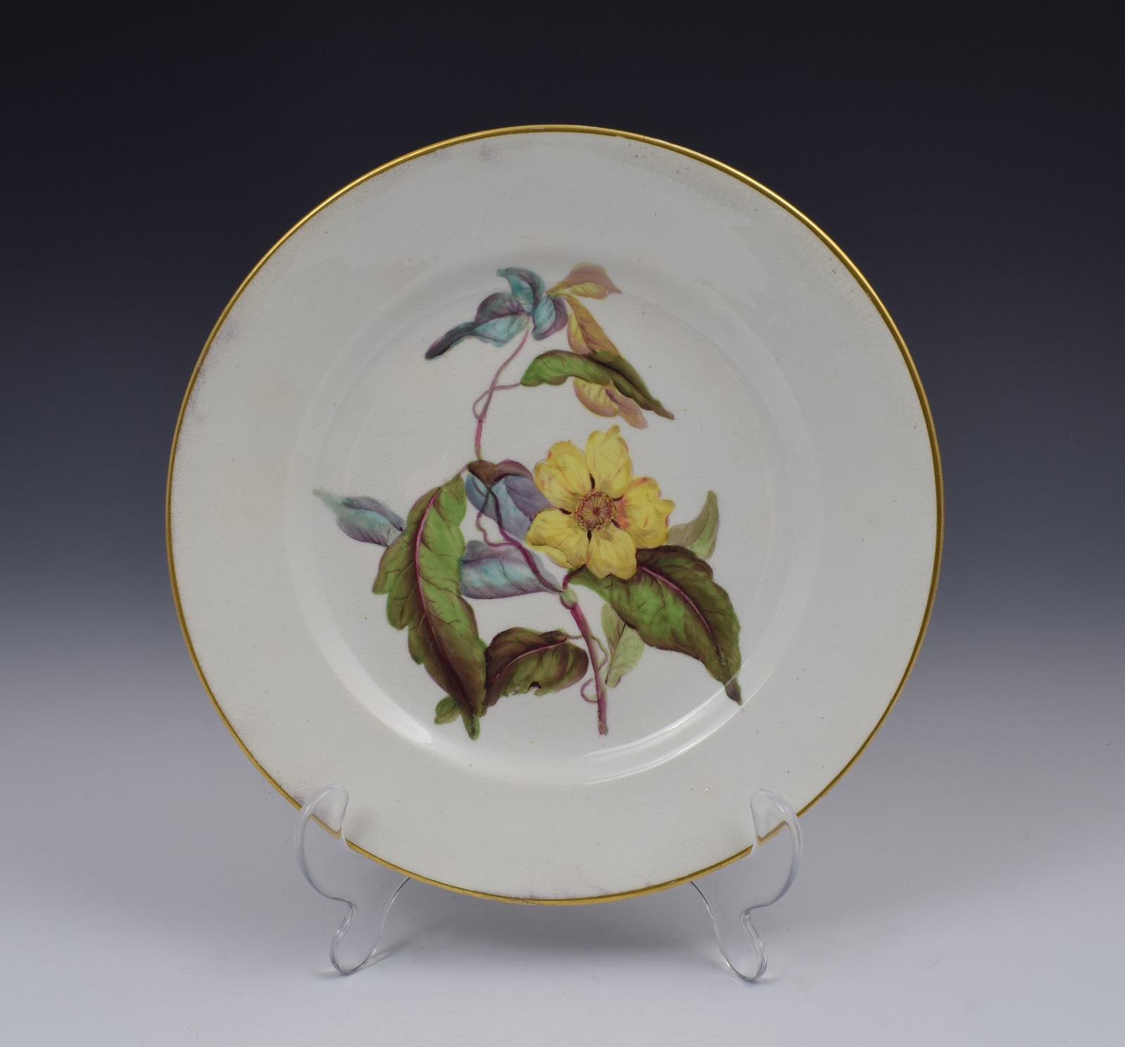 Derby Porcelain Botanical Dessert Plate Toothed Leaved Hibbertia C.1806