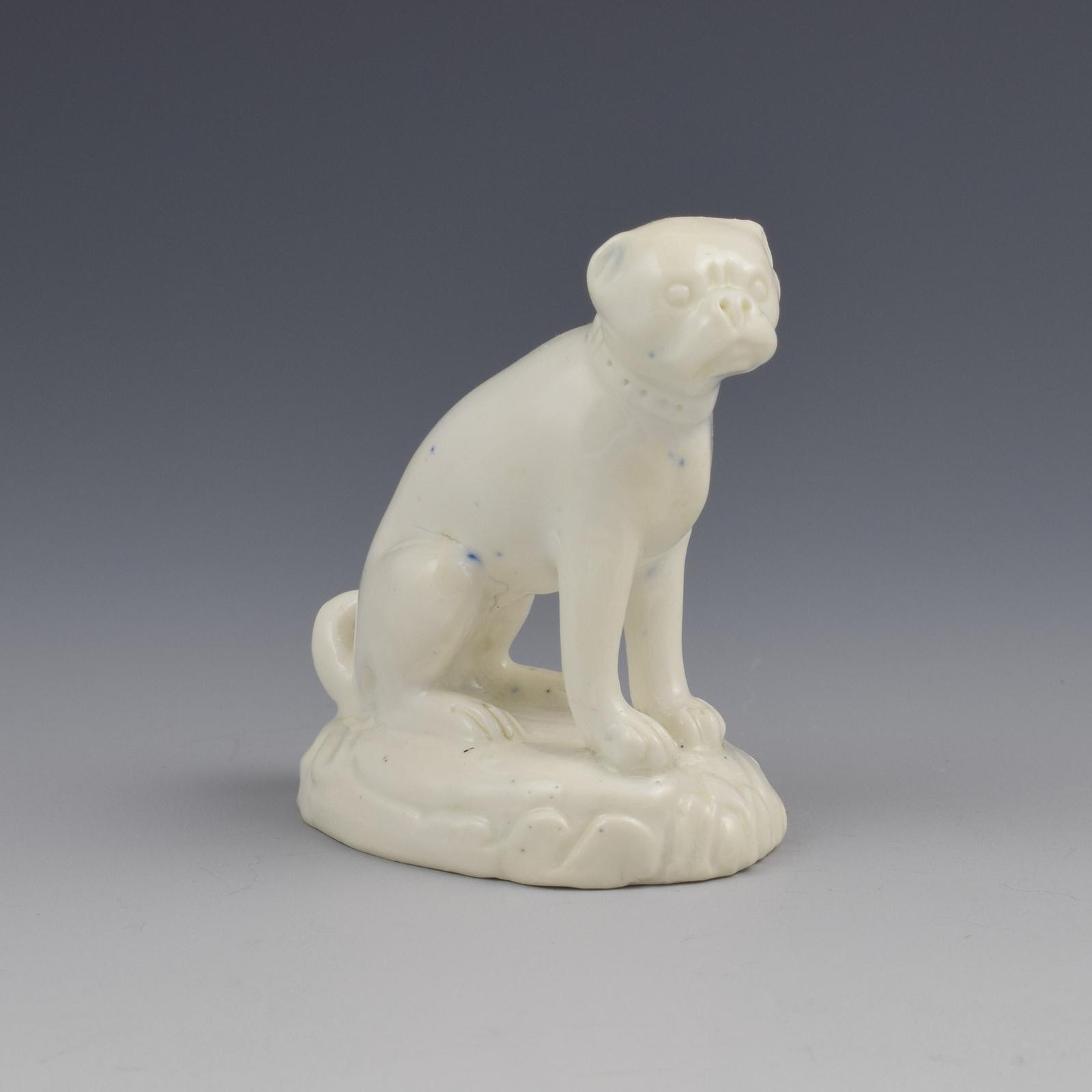 Derby Porcelain White Glazed Figure of a Pug c.1830