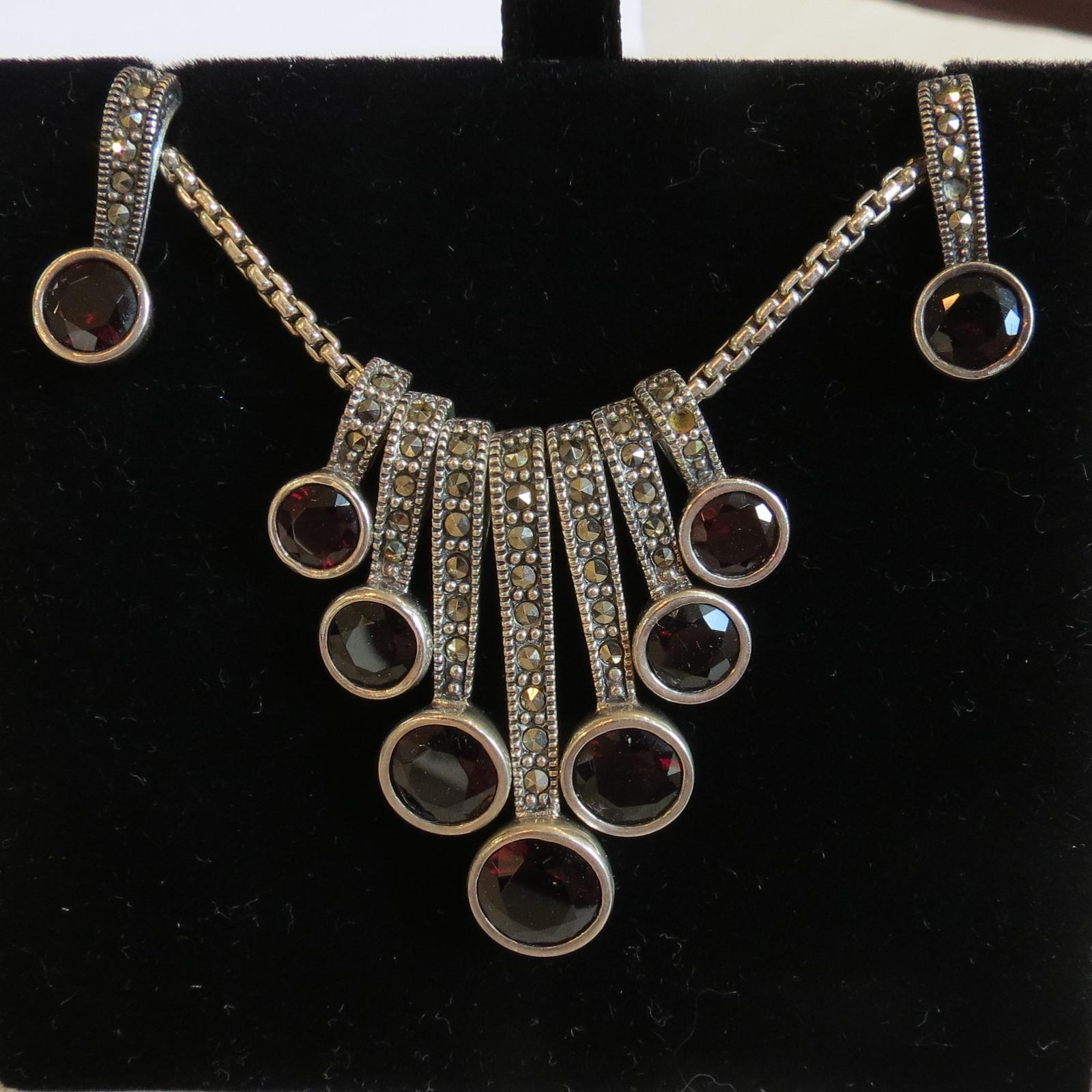 Designer Silver Garnet Necklace & Earrings (1 of 9)