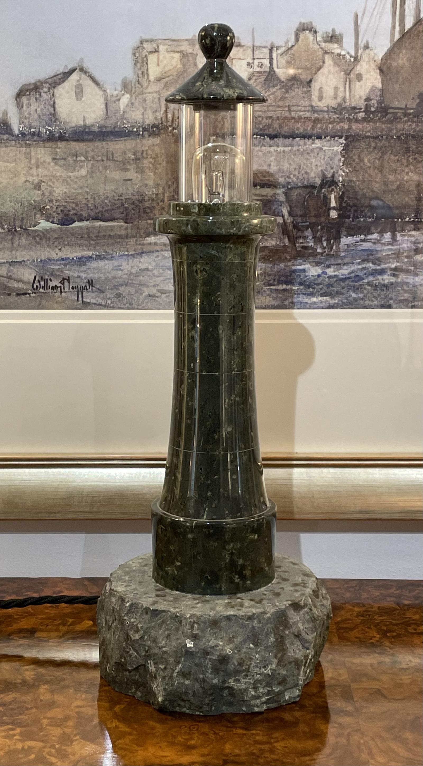 Desirable Cornish Serpentine Lighthouse Table Lamp