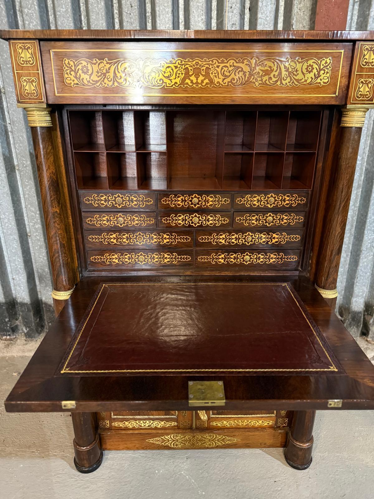 This Desk - Antique Escritoire Desk Regency Rosewood & Brass Inlay 1810-1820 is located in East Sussex, United Kingdom