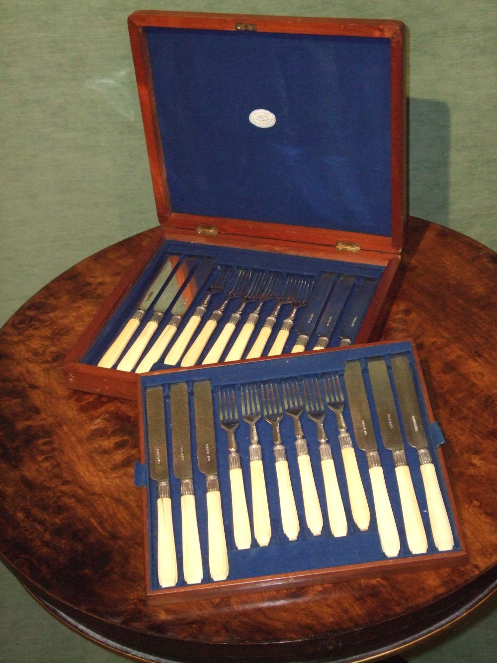 Dessert Silver Cutlery Set in Mahogany Box c.1872