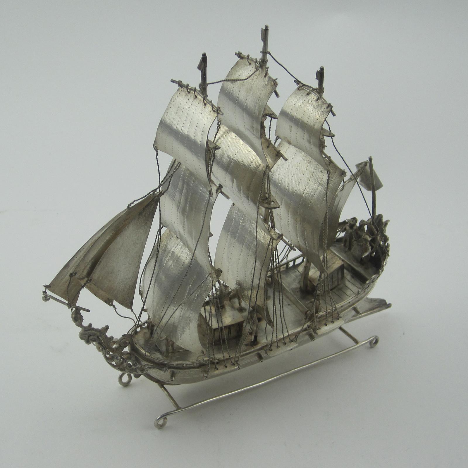 Detailed 19th Century Sterling Silver Dutch Imported Nef Ship