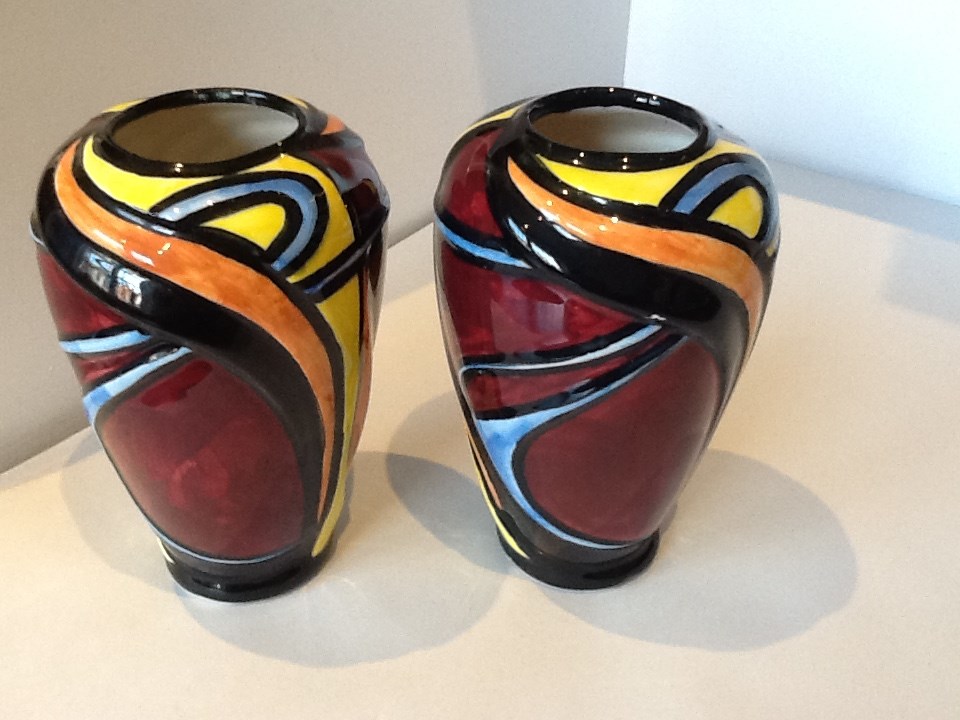Devon 'Fieldings' Hand Painted Art Deco Vases