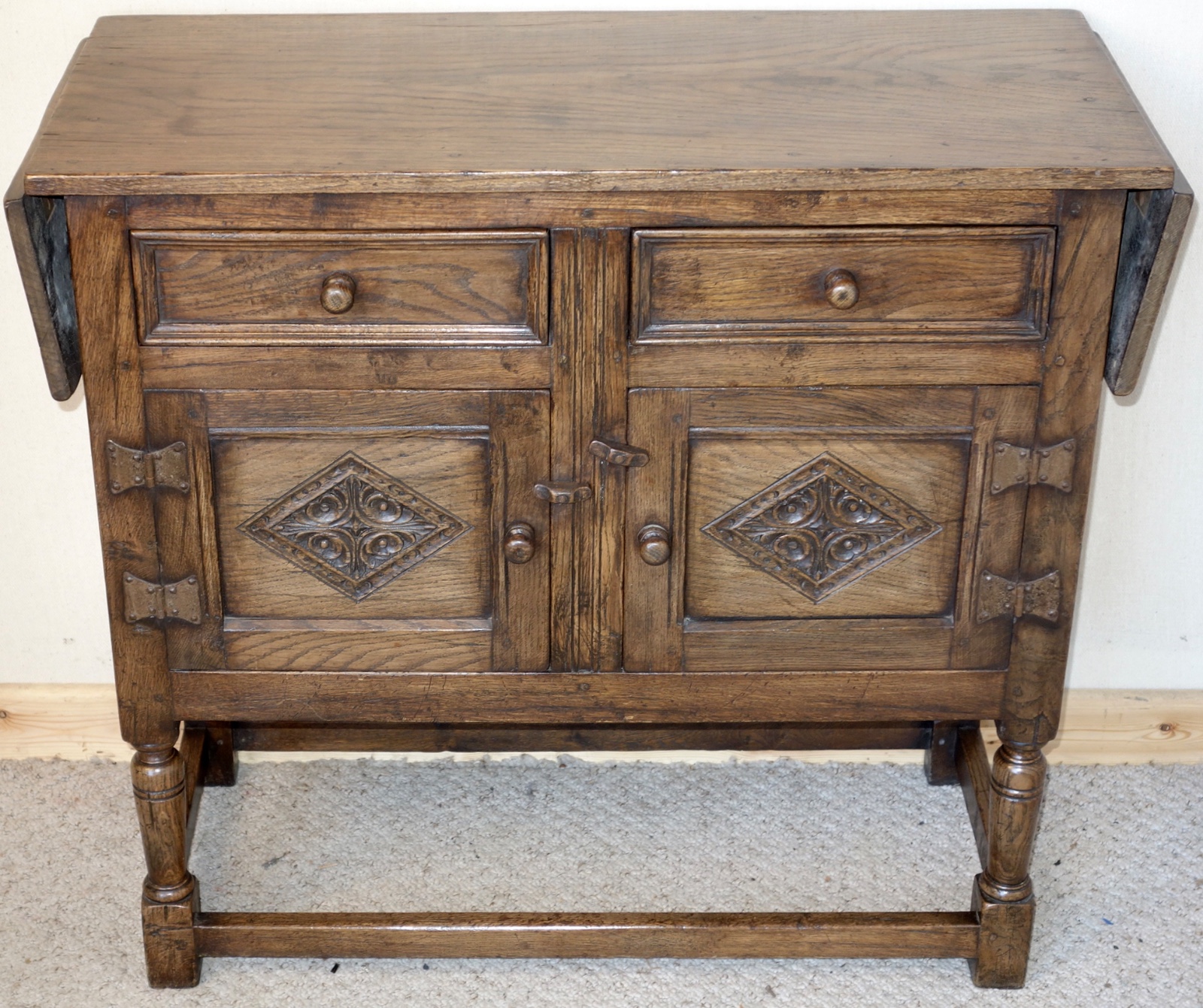 Distressed Carved Oak Flap Cupboard c.1930 (1 of 1)
