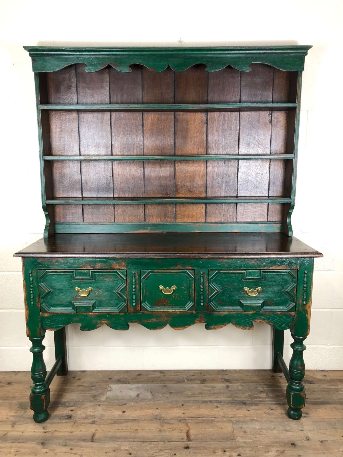 Distressed Green Painted Jacobean Style Oak Dresser (1 of 1)