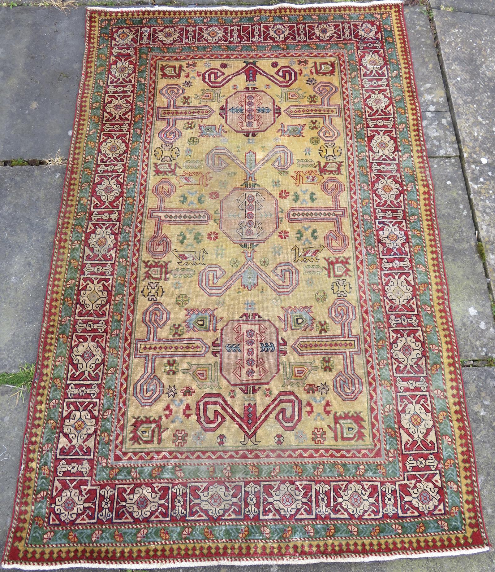 Distressed Yellow Ground Antique Caucasian Erivan Armenian Perepedil Rug