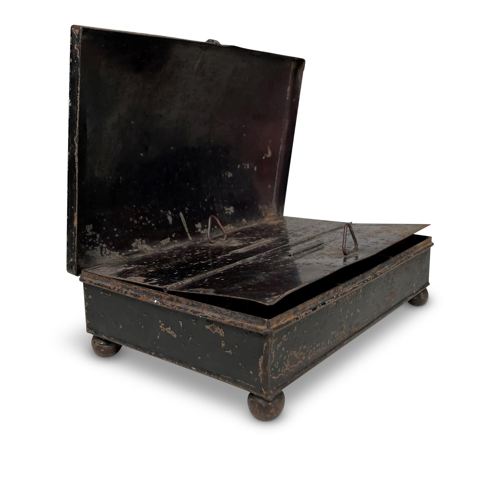 Dome Lidded Top Tole Spice Tin with Internal Compartments Under Two Hinged Tin Lids