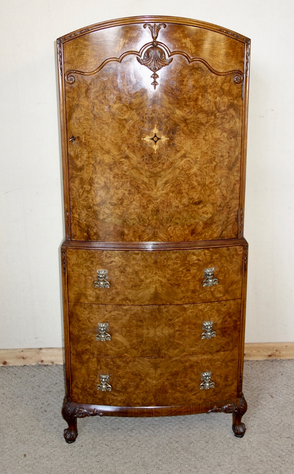 Dome Top Bow-Fronted Walnut Cabinet on Chest of Drawers c.1920 (1 of 1)