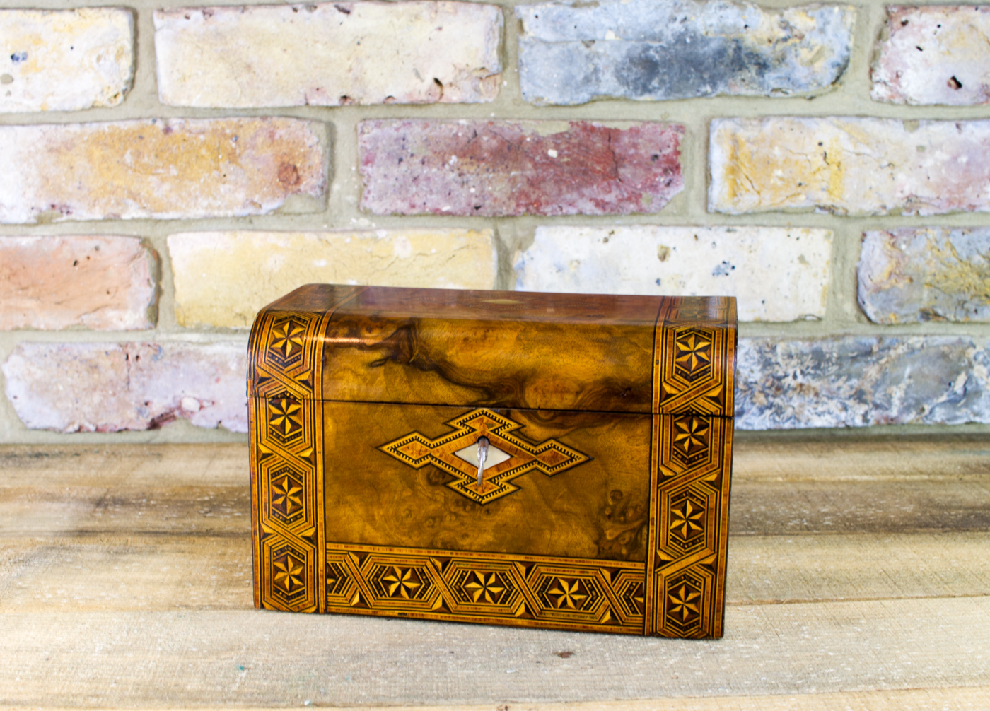 Dome Top Burr Walnut Tunbridge Tea Caddy c.1870 (1 of 8)