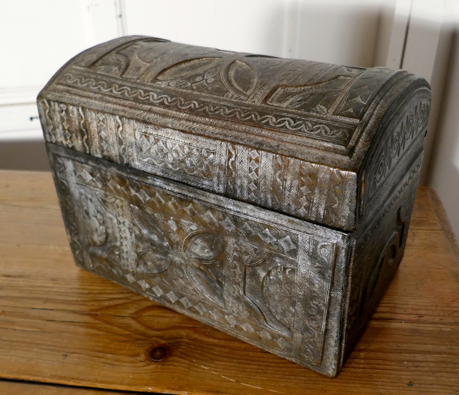 Dome Top Tooled Moroccan Leather Treasure Chest