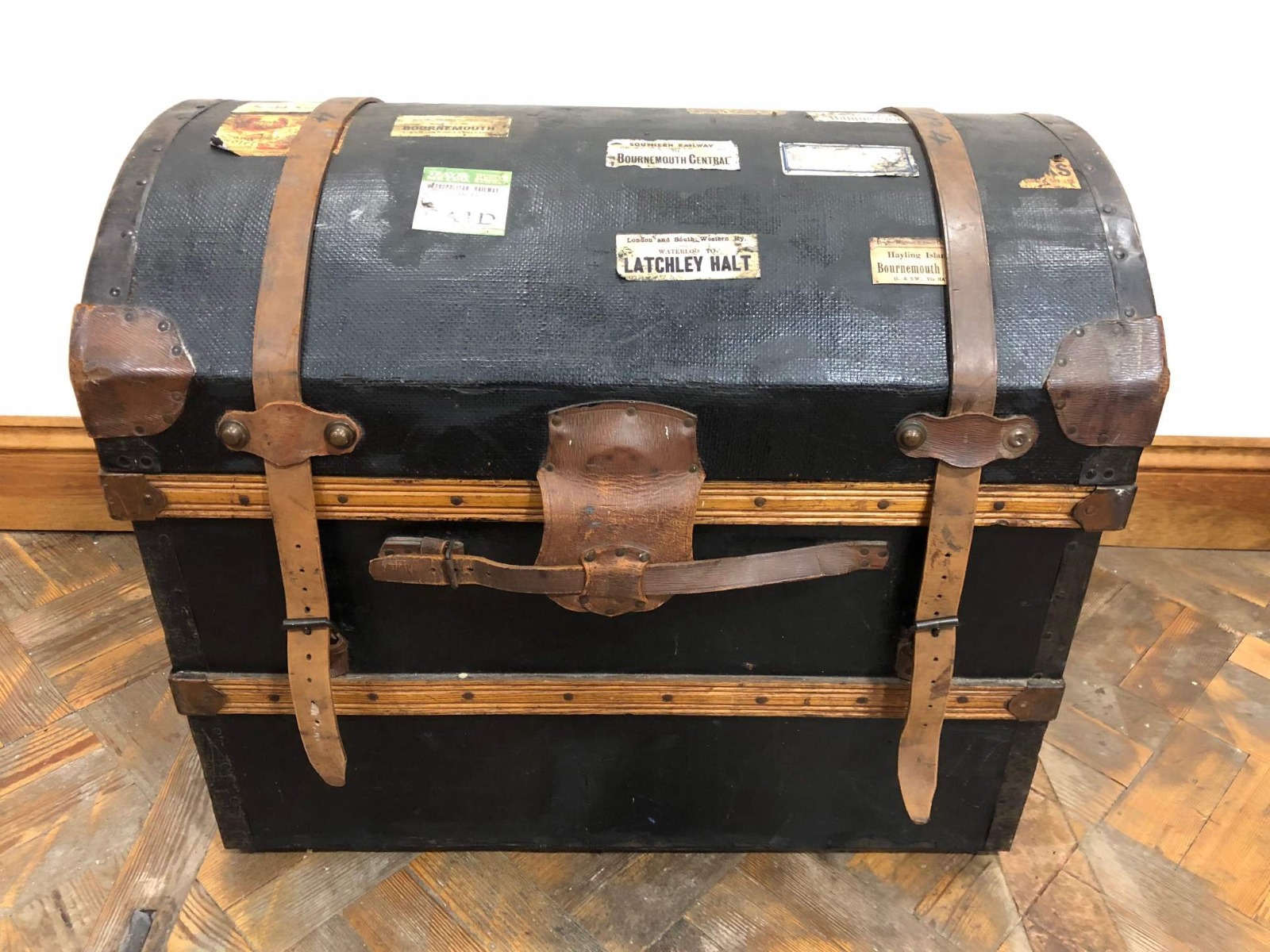 Dome Top Travel Trunk with Old Travel Stickers (1 of 1)