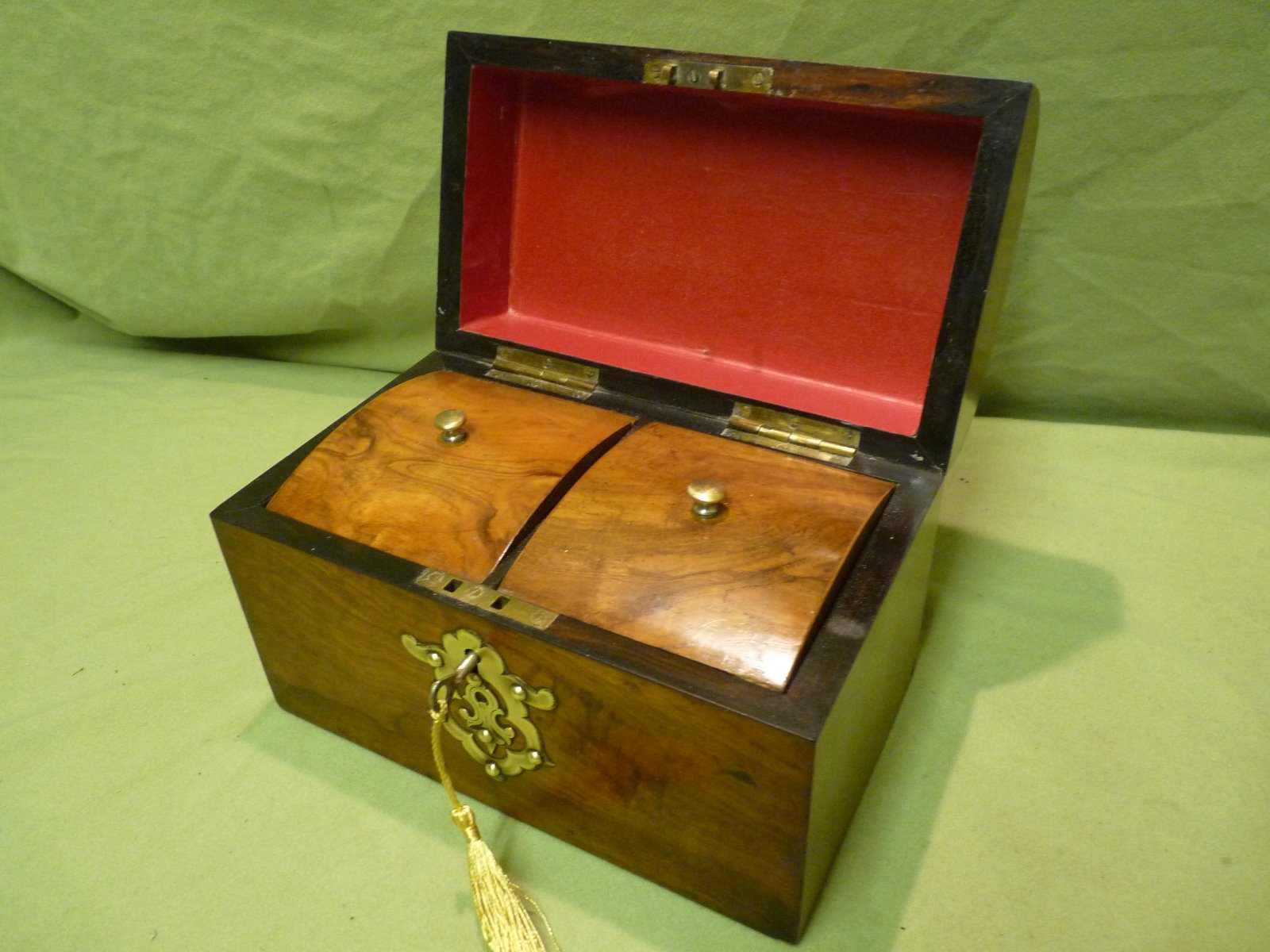 Dome Top Walnut Tea Caddy. Original Dome Top Lids c.1880