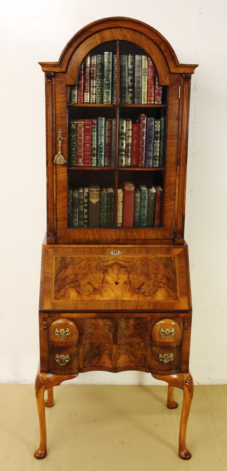 Domed Top Burr Walnut Bureau Bookcase c.1900