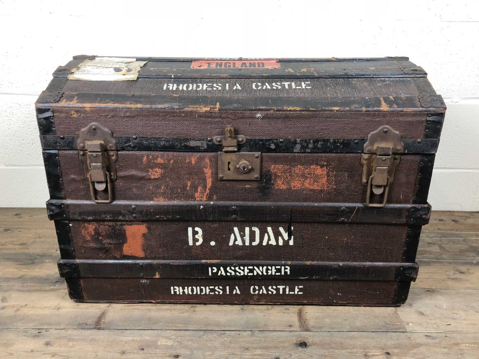 Domed Top Vintage Steamer Travel Trunk with Stickers (1 of 1)