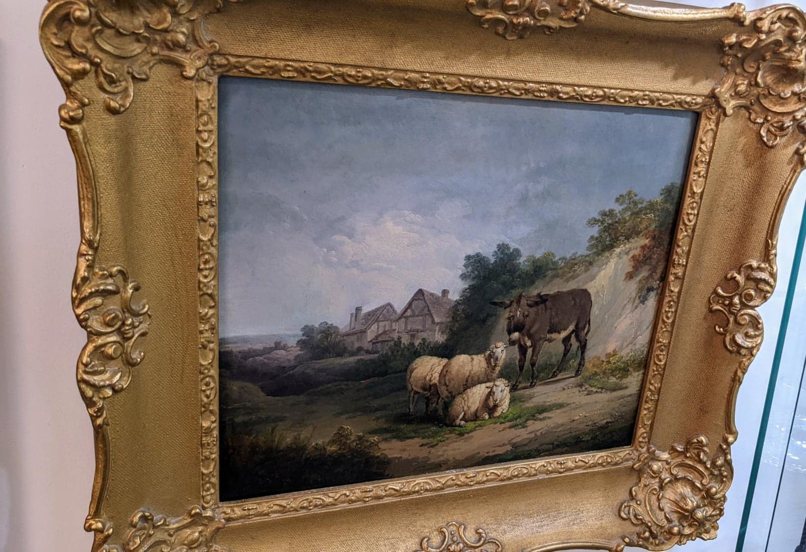 'Donkey and Sheep' Victorian Oil Painting