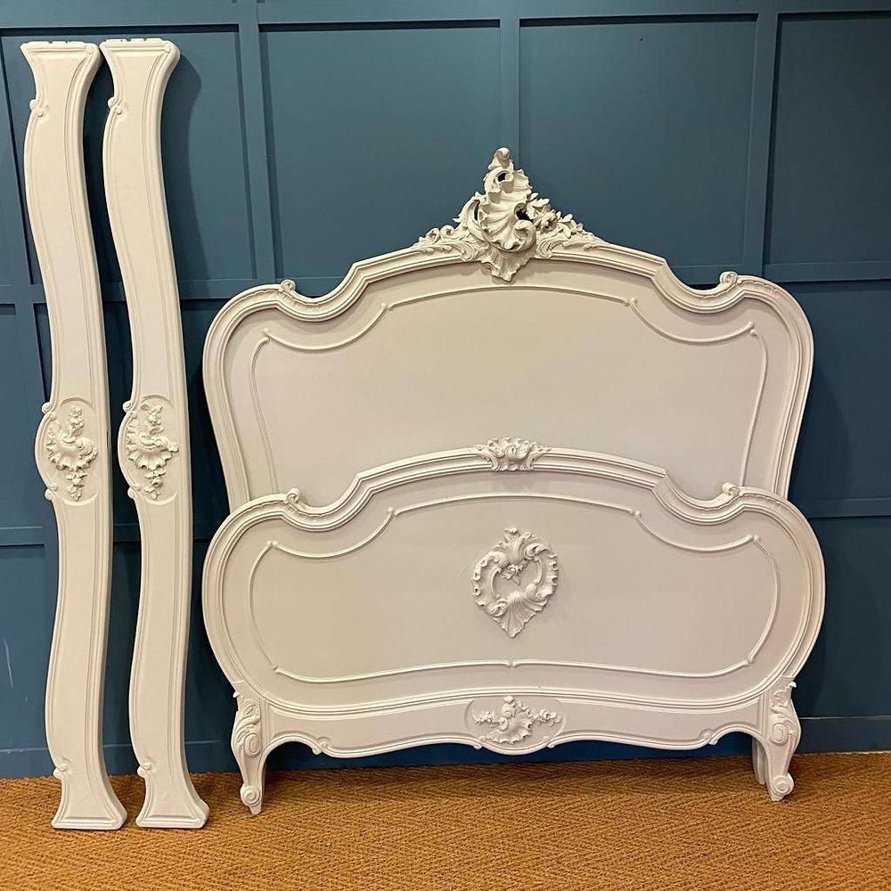 Double 4ft 6' - Antique French Painted Louis XV Wooden Bed