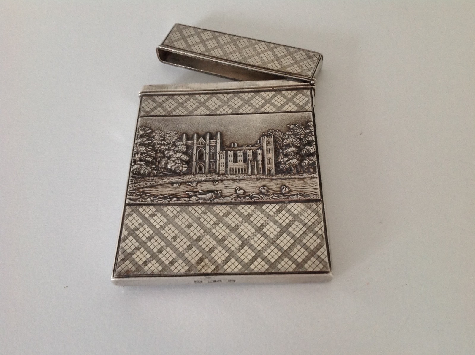 Double Castle Antique Georgian Silver Card Case - Mills 1827