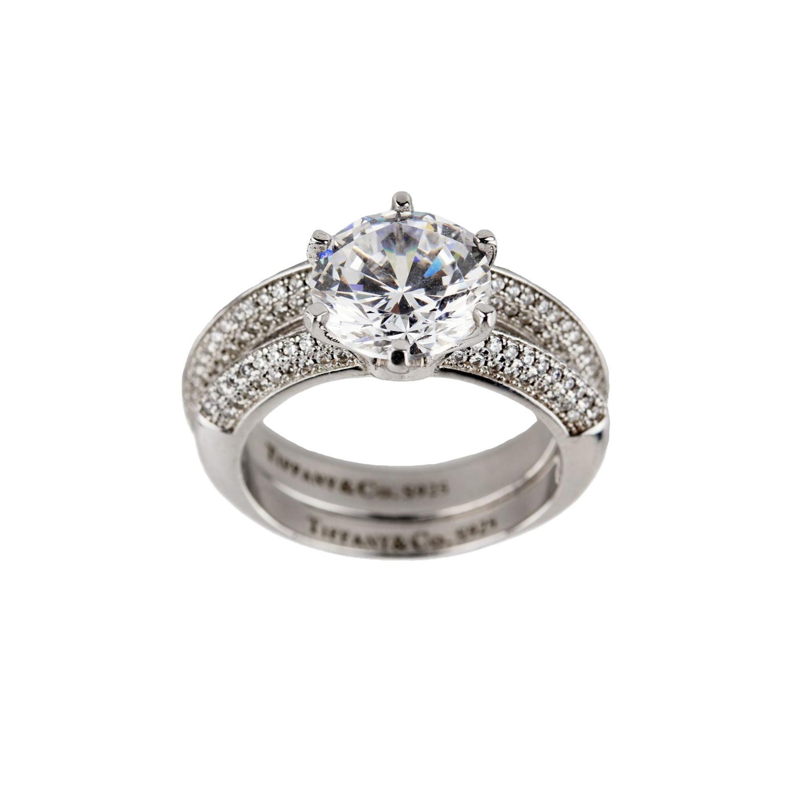 Double silver ring with brilliant cut zircons.