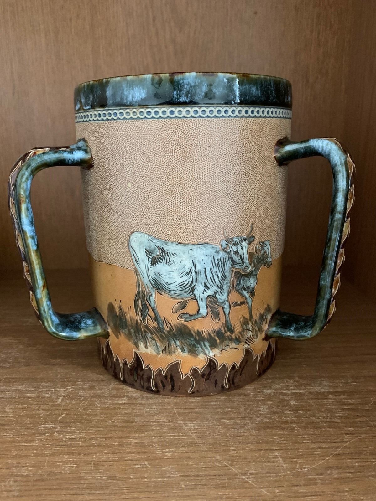 Doulton Lambeth Hannah Barlow Rare 3 Handled Cattle TYG