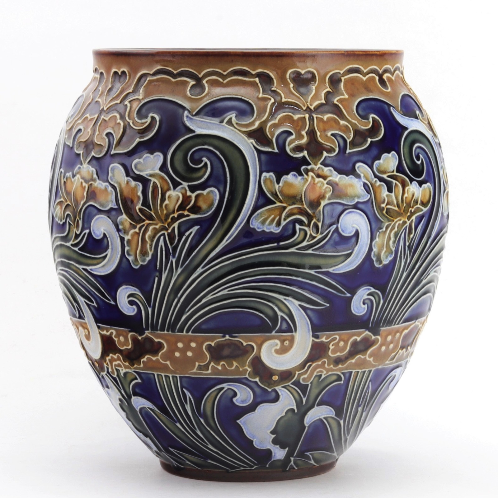 Doulton Lambeth Stoneware Iris Pattern Vase by Rosina Brown C.1895 (1 of 1)