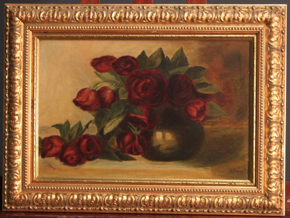 Dozen Red Roses - Victorian Oil on Canvas Signed A. Peters