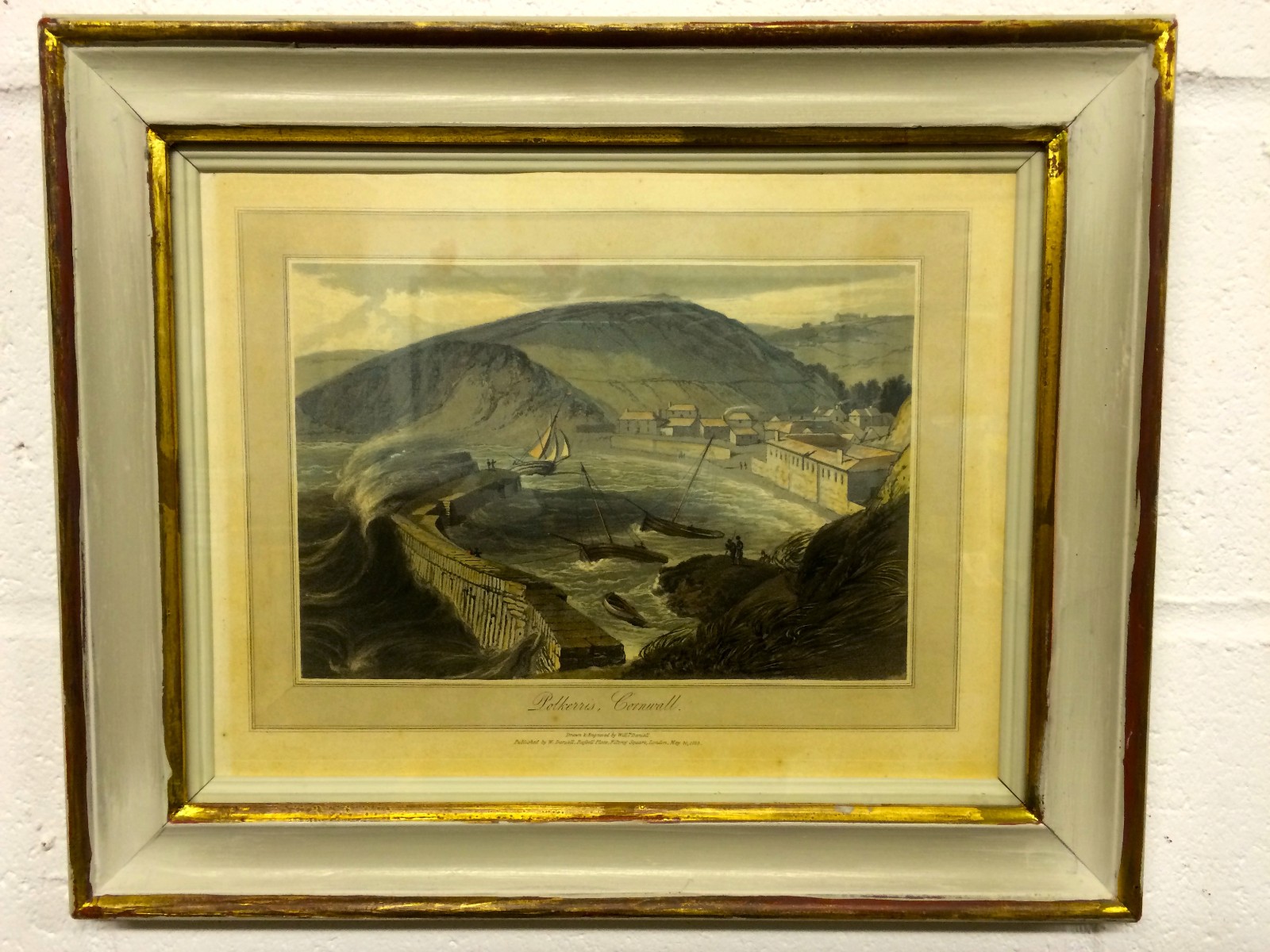 Drawn & Engraved Seascape Aquatint, Polkerris, Cornwall, William Daniell c.1825
