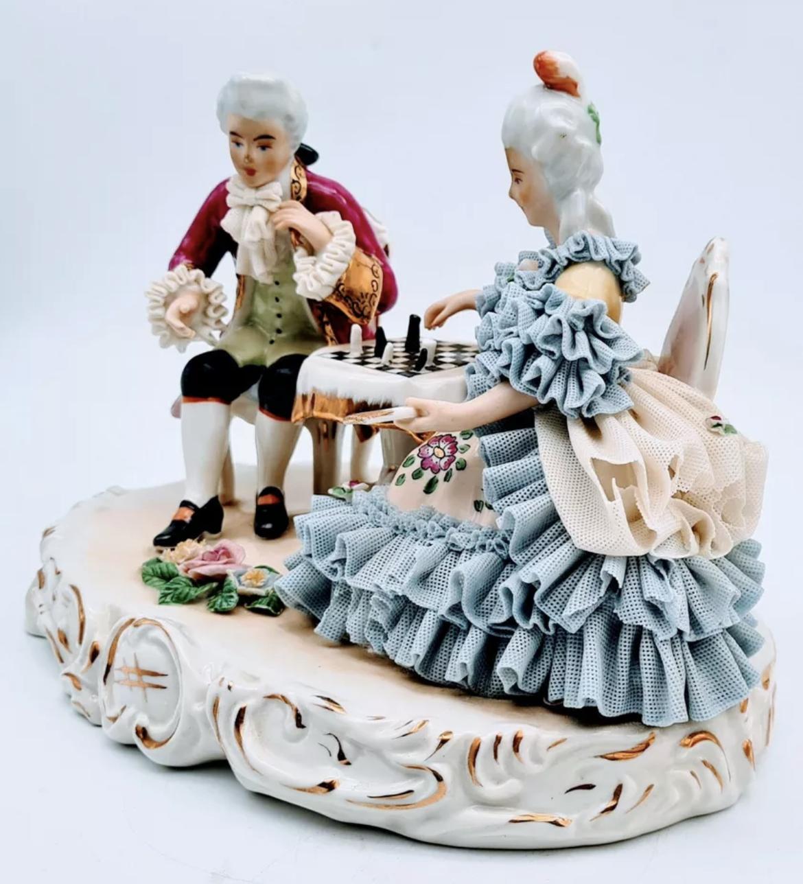 Dresden Germany Figurine Sculpture of Couple Playing Chess