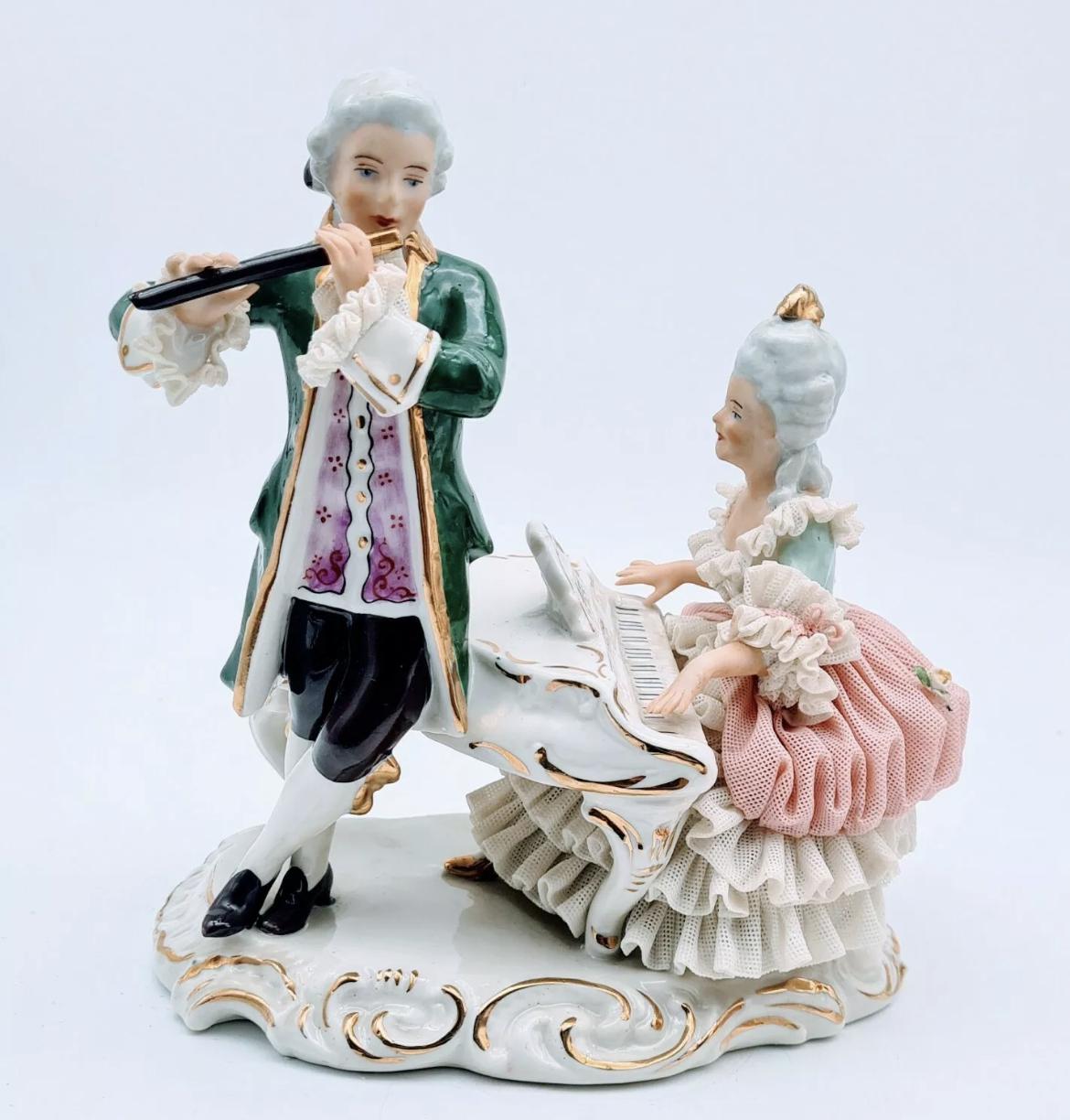 Dresden Germany Porcelain Figurine Musicians Playing Piano & Flute