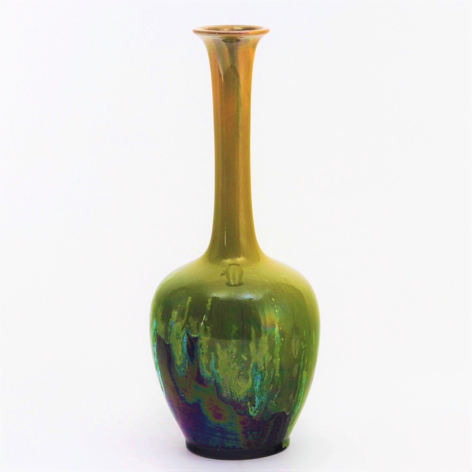 Dresser Linthorpe Pottery Long Neck Baluster Art Vase by H Tooth C.1880
