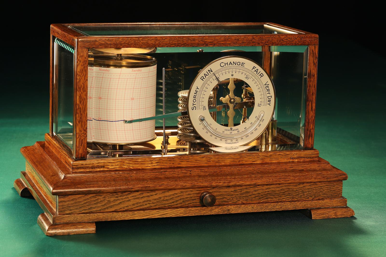 Drum Barograph with Dial & Thermometer c.1920