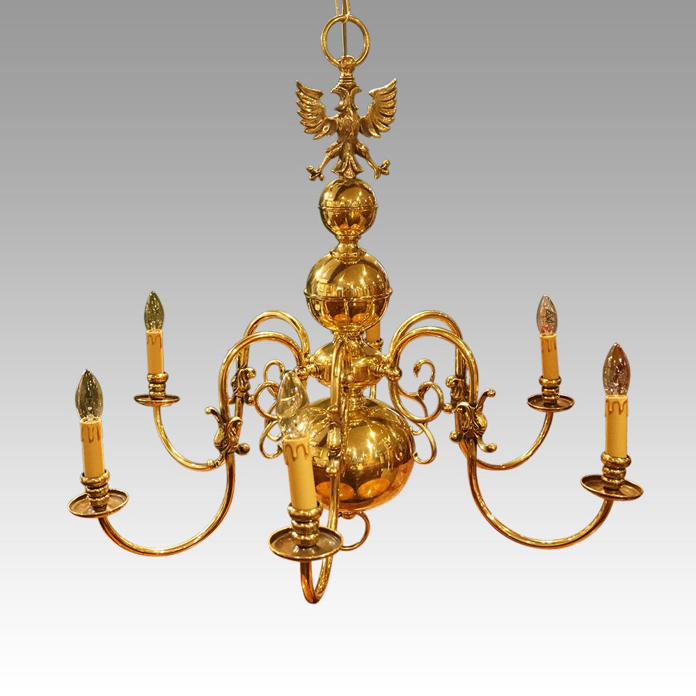 Dutch Brass 6 Arm Chandelier (1 of 4)