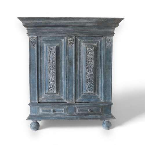Dutch Carved 2 Door Cupboard Later Painted Mottled Midnight Blue
