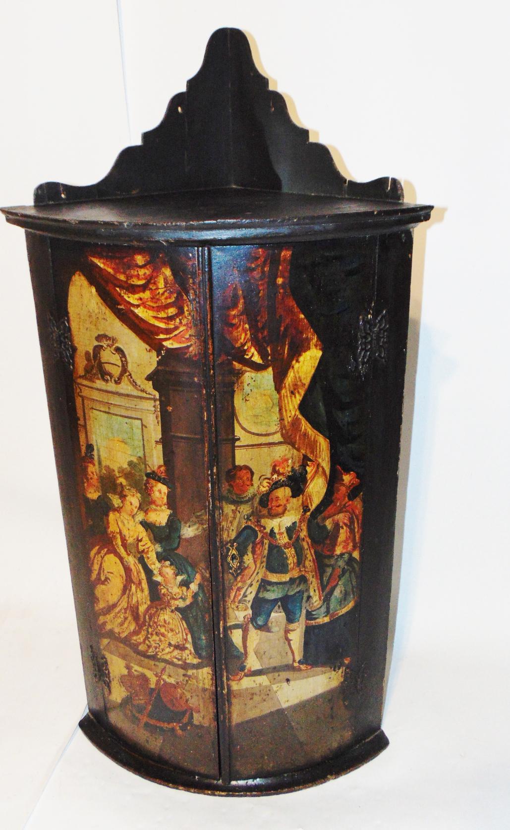 Dutch Decorated Bow Fronted Hanging Corner Cabinet