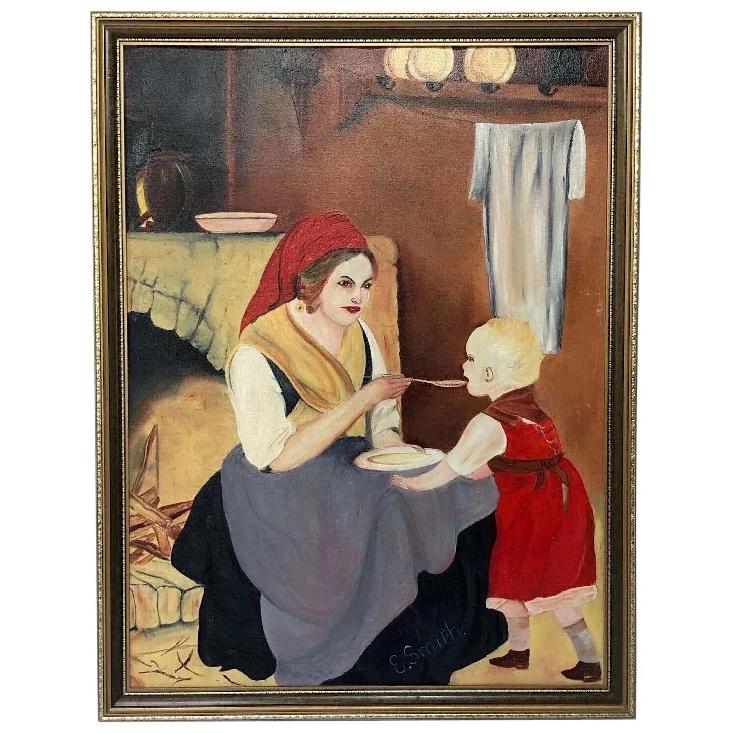 Dutch Genre Oil Painting Interior Scene
